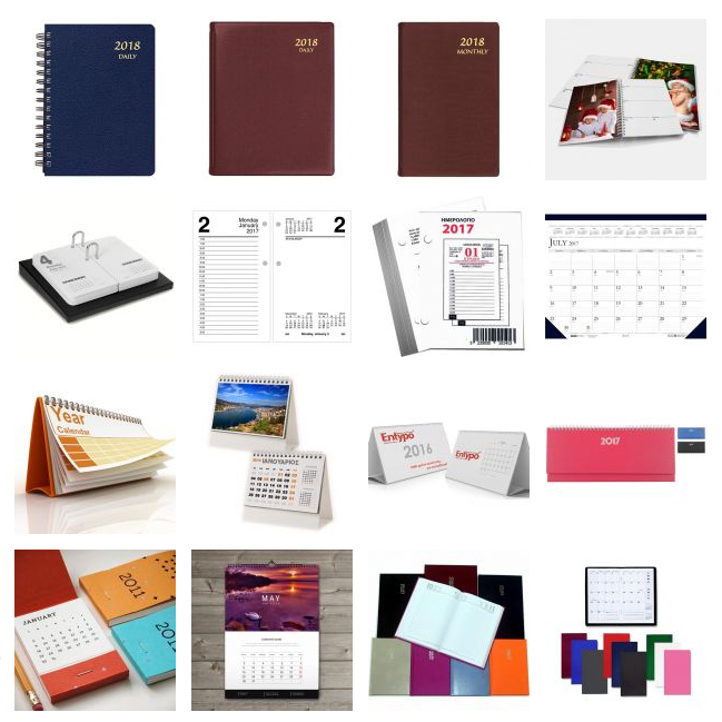 Ετήσια ημερολόγια διαφόρων τύπων για αθλητικούς, πολιτιστικούς και εκπαιδευτικούς συλλόγουςκαθώς επίσης και ετήσια ημερολόγια για προσωπική χρήση ή για να δωρίσετε στα αγαπημένα σας πρόσωπα.
